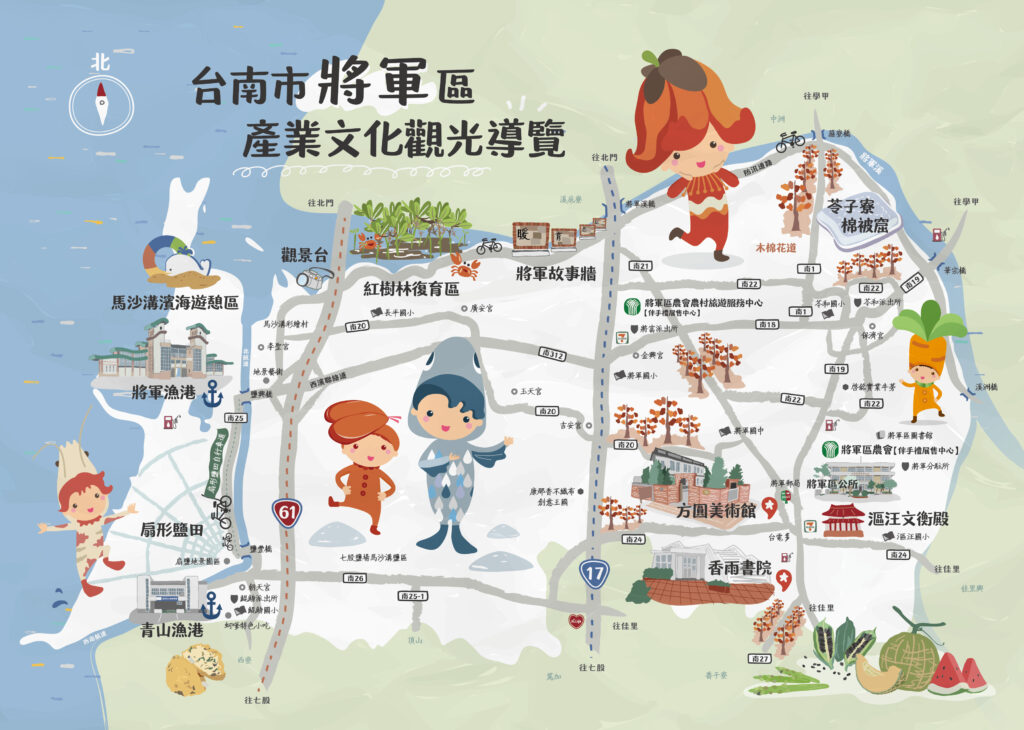 今日的將軍區,在雲嘉南濱海國家風景區的脈絡下,逐漸從產業重鎮蛻變為慢活旅遊的理想去處。海風帶來鹹味,田野散發土香,這裡的風景不僅是視覺饗宴,更是歲月與勞動的靜默對話。